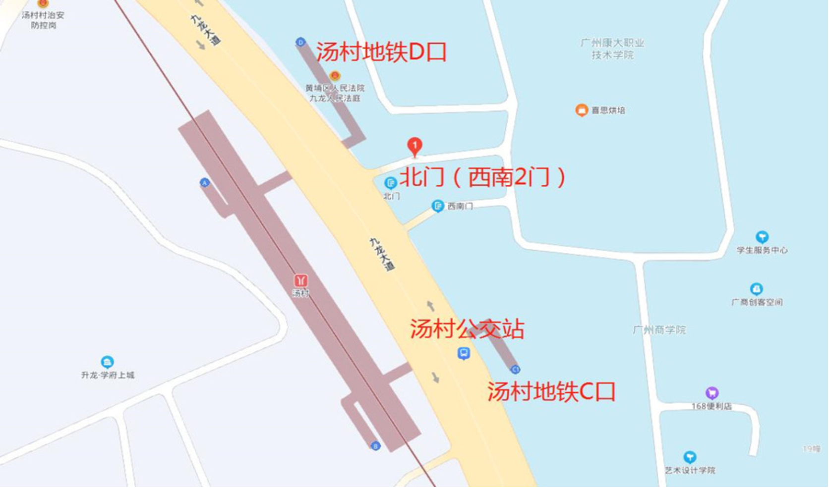 3.本考点位于广州地铁14号线支线汤村站(C或D出口),考生仅允许从北门进入考点,不允许非本校登记车辆进入校园,考生应尽量选择公共交通工具前往考点。陪考人员不得进入学校或在校门口长时间等候。