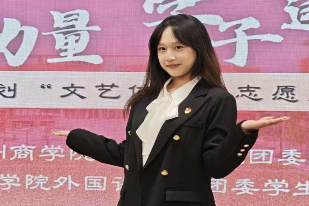 作为校、院两级团学骨干,廖诗婷始终以认真踏实的工作态度投身学生工作,积极组织、策划并协助开展校园文化、学风建设、志愿服务等各类活动20 余场。从活动策划、统筹协调到现场执行、总结复盘,她全程认真负责、细致严谨,在一次次实践中不断提升组织协调、沟通协作与应急处理能力,做到在活动中学习理论、在实践中锤炼本领。同时,她善于总结反思,将团学工作中积累的经验、方法与团队协作能力转化为比赛优势,积极参与各类学生骨干技能比拼,在外国语学院学生骨干技能大赛团体赛中斩获一等奖,用扎实行动展现了新时代学生骨干的担当与风采。