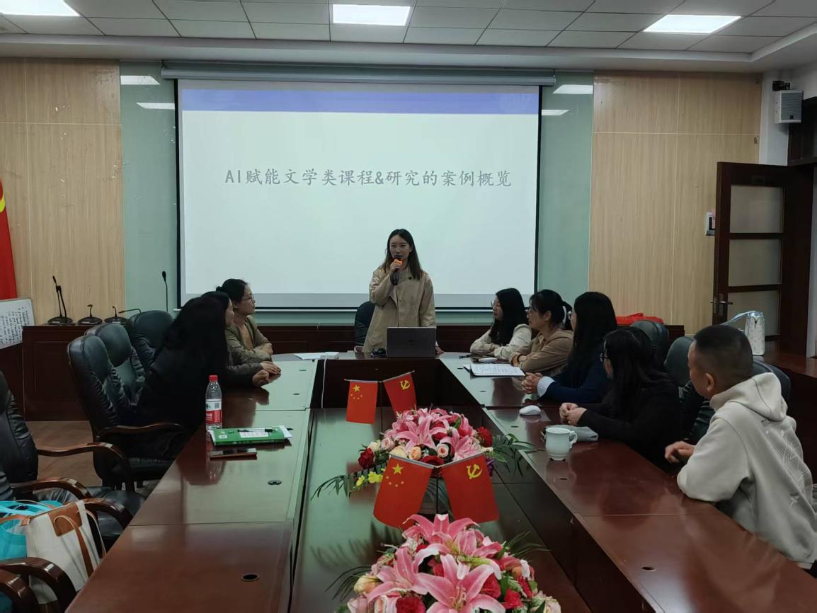 最后,作为英语系教研工作坊第一期的重要内容,朱艳茹老师分享了《英语文学导论》课程中AIGC智能体的应用案例,围绕AI赋能课程建设,从教学方案设计、知识图谱生成到多模态资源制作,详细展示了AI赋能课堂的实践路径,为老师们提供了可借鉴的教学创新范例。