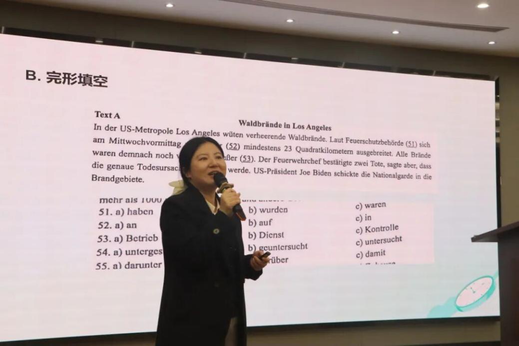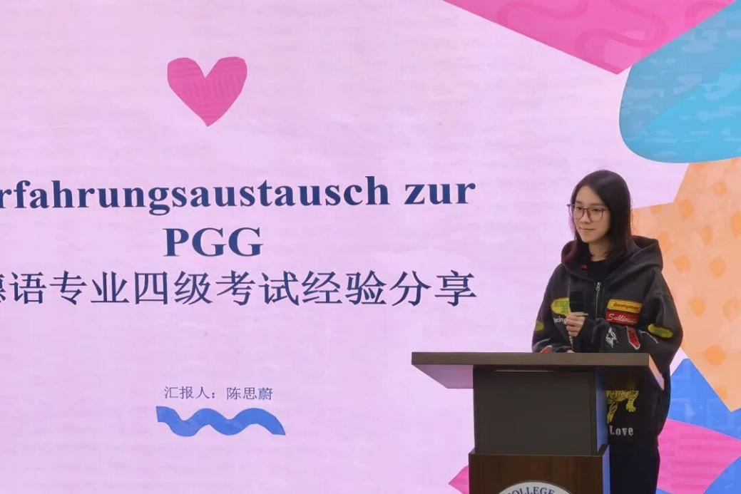 在学生嘉宾经验分享环节,陈思蔚聚焦听力提升、阅读技巧与备考规划,详解听力各题型答题方法及阅读标题匹配题技巧,给出夯实课堂基础、善用学习工具、合理刷题纠错的备考建议,助力高效备战考试。此次德语专业四级经验交流会的举办,是学校“求真 立信 笃行”办学理念的生动实践,也是外国语学院重视专业人才培养、助力学子成长成才的具体举措。