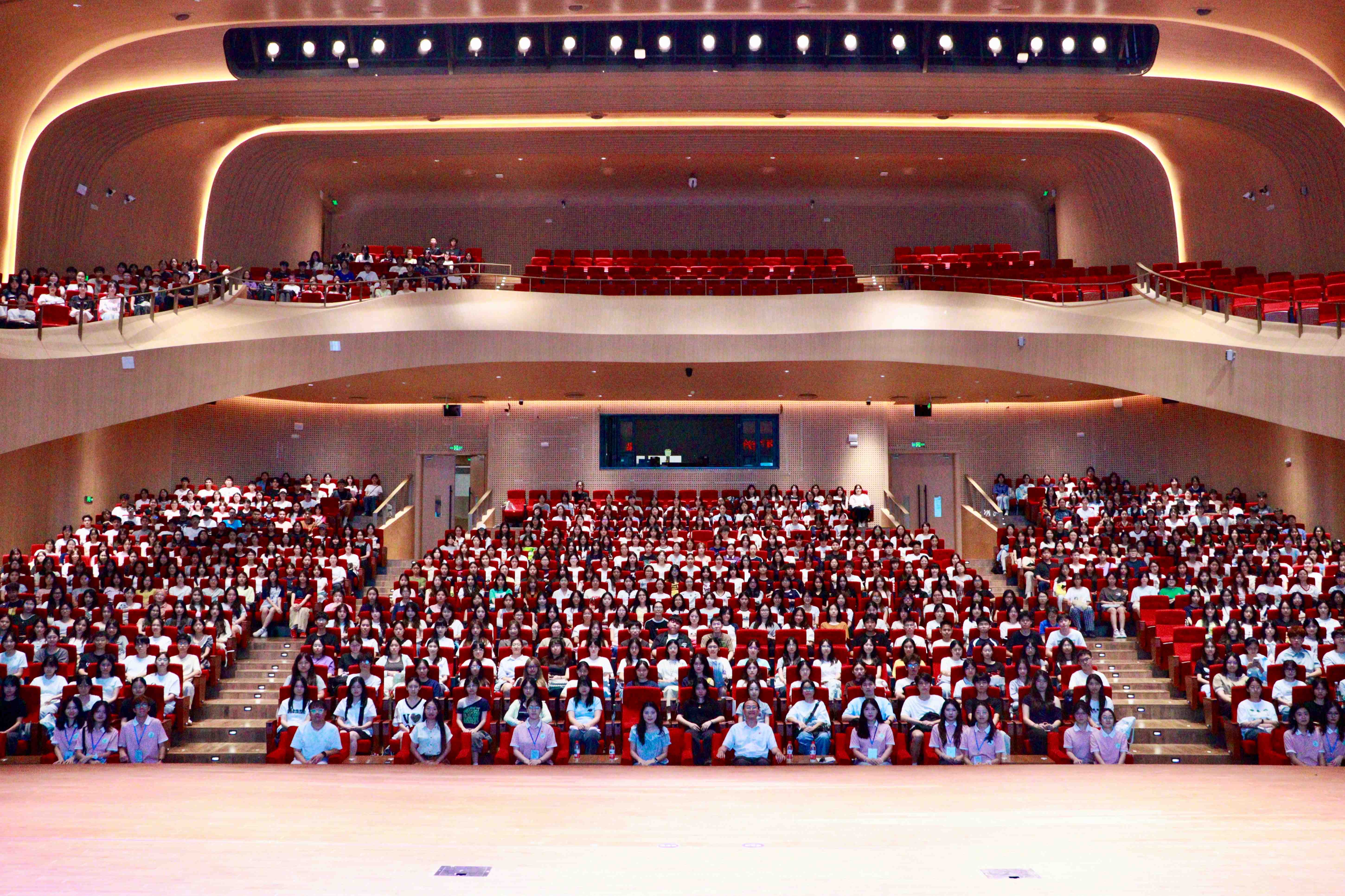 为促进2025级新生进一步了解学校的发展史,增强学生的归属感,牢固树立爱校荣校的意识,明确大学四年的学习目标,外国语学院于9月14日在求真文化中心举行“院长第一课”“书记第一课”入学教育活动。参加本次活动的有外国语学院院长郭遂红、外国语学院党总支书记徐超、2025级新生辅导员李超、何沛瑾、蔡文蝶及2025级全体新生。