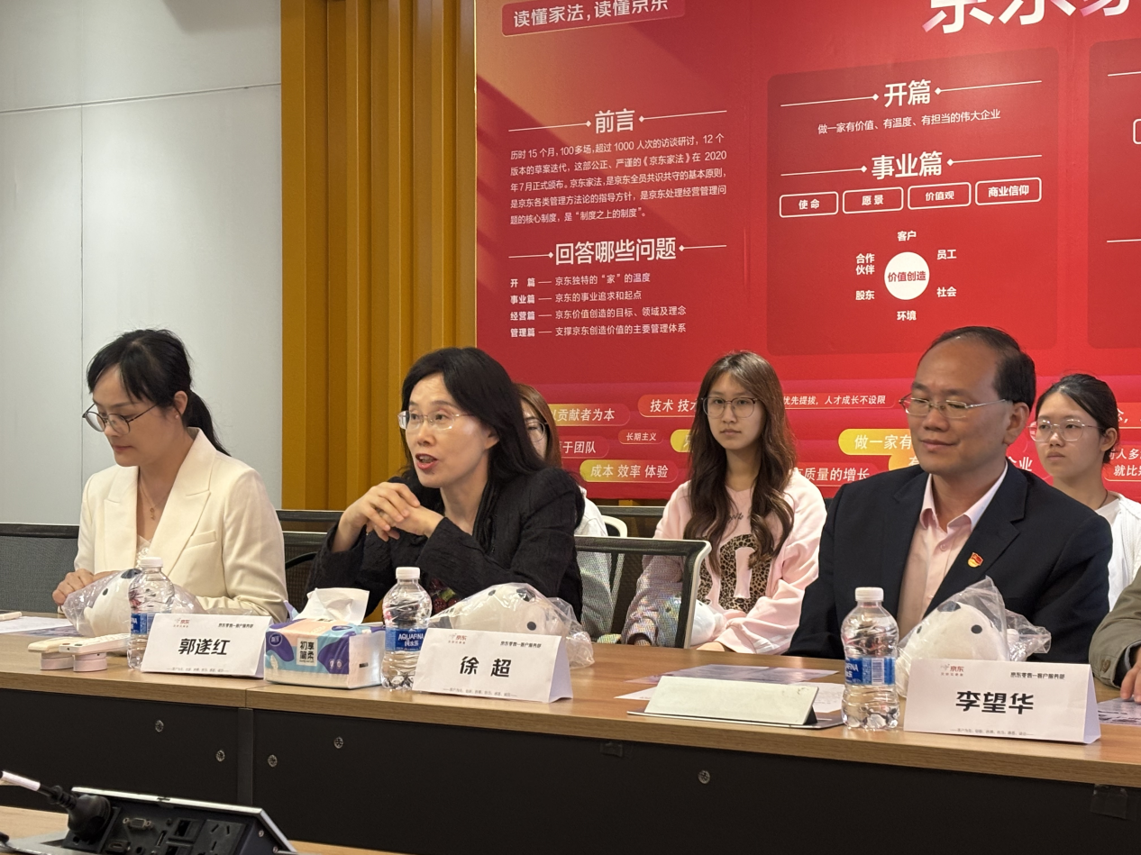 郭遂红对京东华南(广州)电子商务基地的热情接待表示感谢,并对京东的企业文化和管理机制给予了高度认可。随后,郭遂红介绍了广州商学院外国语学院的专业设置、师资力量、人才培养特色等基本情况。她表示,学院一直致力于培养适应社会需求的高素质外语人才,此次与京东华南(广州)电子商务基地的交流为双方开展合作提供了良好的契机。郭遂红提出,双方可以在人才培养、提供就业创业机会、双师双能型教师培养以及校企合作项目开发等多个方面展开深度合作,实现资源共享、优势互补。她着重强调,学院愿意在企业宣讲、人才选拔等方面提供便利,提前为企业储备优秀人才。