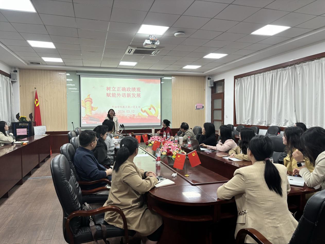 3月12日中午,外国语学院教工第一党支部在第二行政楼308室召开树立和践行正确政绩观学习教育动员部署会,深入学习贯彻习近平总书记关于树立和践行正确政绩观的重要论述,动员支部全体党员以正确政绩观为引领,赋能外院教育事业新发展。会议由党支部书记田晶晶主持,支部全体党员参加会议。