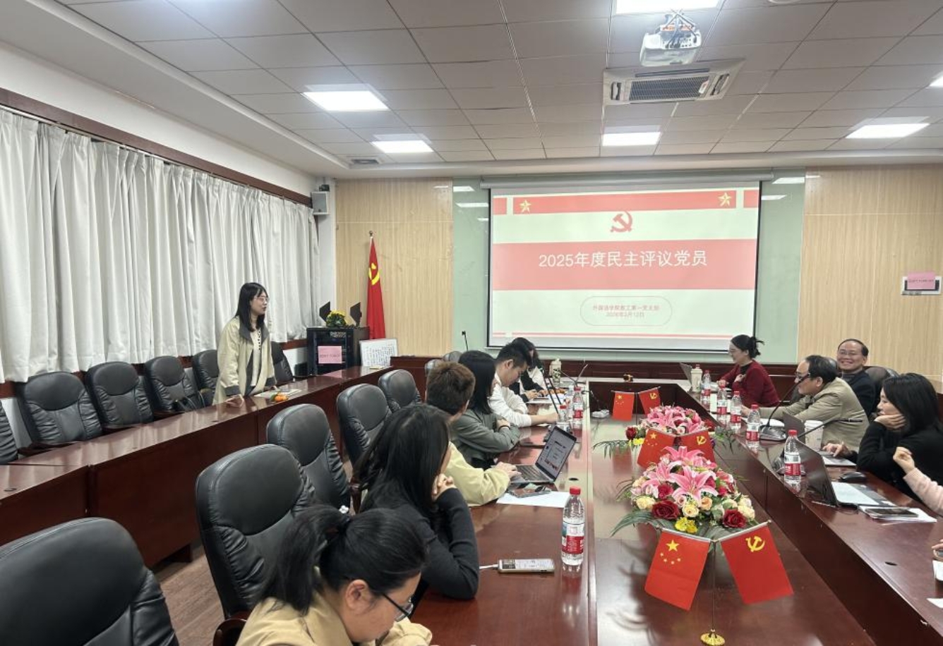 为深入学习贯彻习近平新时代中国特色社会主义思想,全面贯彻落实党的二十届四中全会精神,锲而不舍地落实中央八项规定精神,推进作风建设常态化长效化,3月12日中午,外国语学院教工第一党支部在第二行政楼308室召开2025年度组织生活会暨民主评议党员大会。会议由党支部书记田晶晶主持,支部全体党员参加会议。