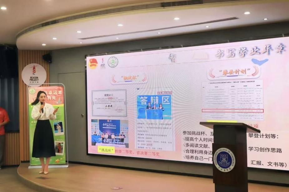 艺术舞台上,她自信从容、风采熠熠,先后主持2024年迎新晚会、广商大讲堂等30 余场校级大型活动,以沉稳大气的台风、清晰流畅的表达赢得师生一致好评;同时深耕艺术创作与实践,荣获广东省“多彩乡村 共谱新篇” 摄影类三等奖等16 项艺术类奖项,在舞台与光影间绽放青春光彩。作为一名英语专业学生,她始终坚持学以致用、以行践知,专注提升专业实践能力,积极参与展会翻译、陪同翻译等实践工作20 余场,累计翻译时长超500 小时,在真实场景中锤炼语言功底、提升跨文化沟通与临场应变能力,用扎实专业素养书写英语学子的责任与担当。