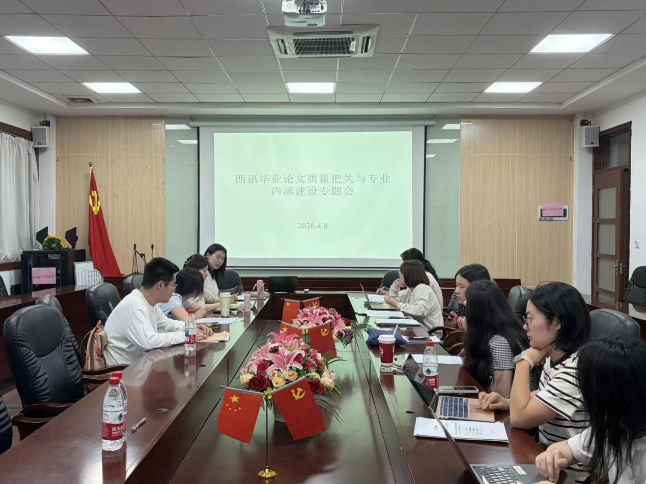 4月8日中午,西班牙语教研室在第二行政楼308会议室召开了毕业论文质量把关与专业内涵建设专题会,西方语言系副主任邝美琳老师、西班牙语教研室主任廖运老师及全体专任教师参加会议,围绕毕业论文答辩安排及专业建设重点任务展开部署并深入交流。