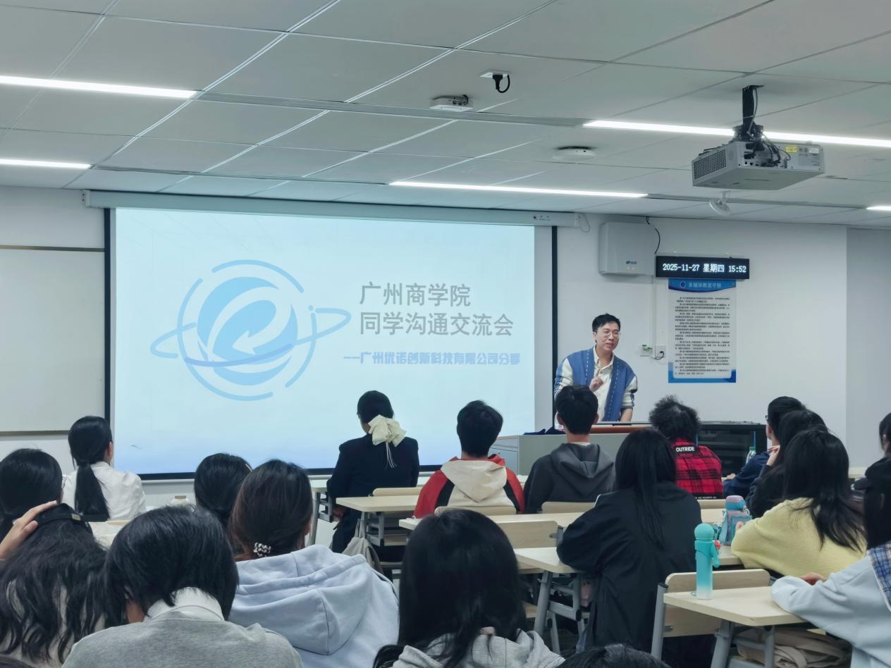 11月27日下午,外国语学院在第八教学楼517教室举行了一场以“在挑战中捕捉就业新机遇”为主题的跨境电商就业分享会。本次活动特邀广州优诺创新科技有限公司高管、二级人力资源师及中级经济师马润明先生担任主讲,德语专业教师谢德隆、邓倩璐及全体25级德语专业学生积极参与。