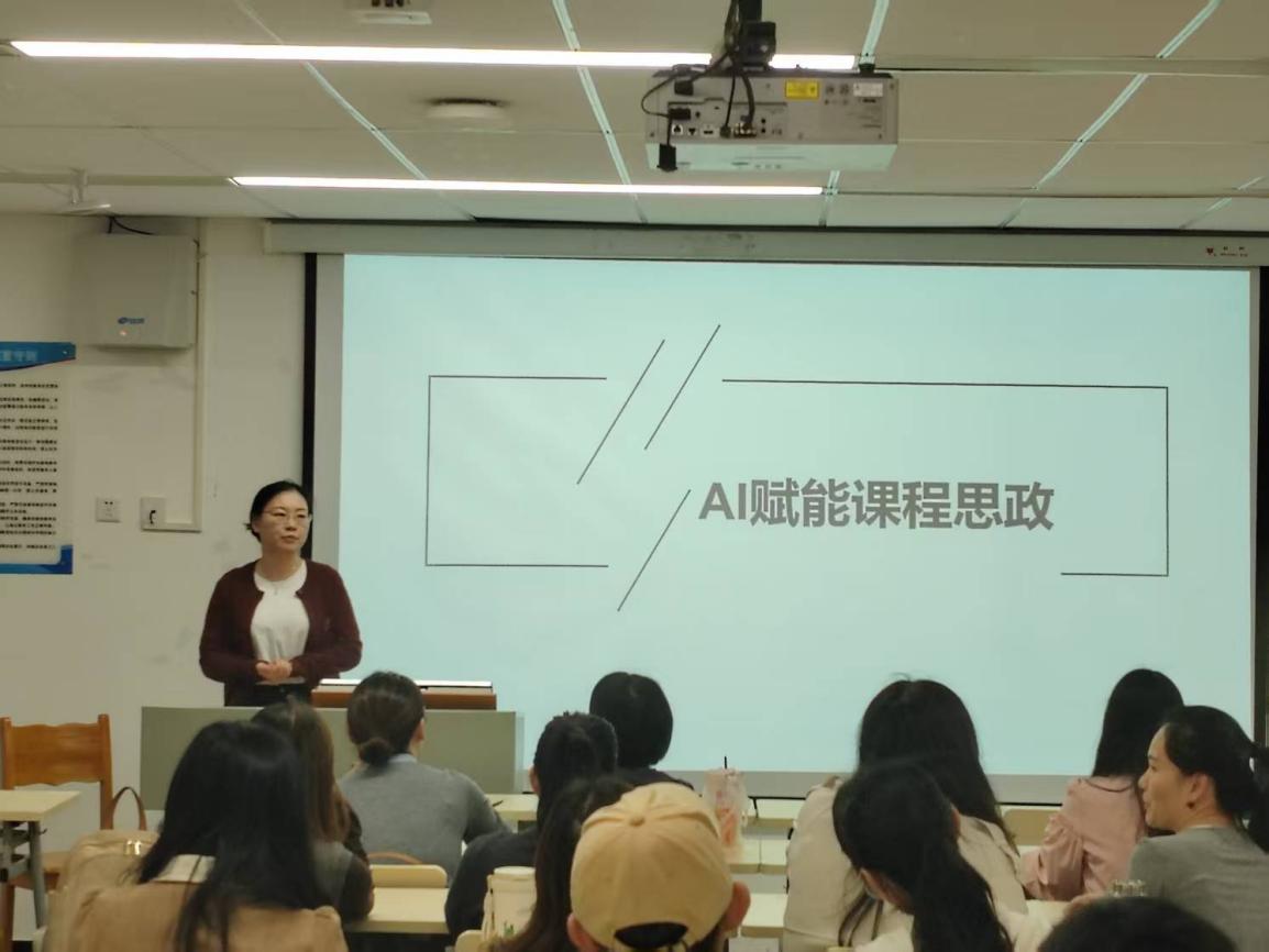 AI赋能课程思政教学研讨环节,张慧慧老师分享实践经验,围绕AI工具与课程思政融合、技术赋能价值引领等内容展开阐述。互动研讨中,教师们结合教学实际,就AI在课堂设计、思政渗透中的应用难点交流见解,凝聚 “数智融合” 教学共识。