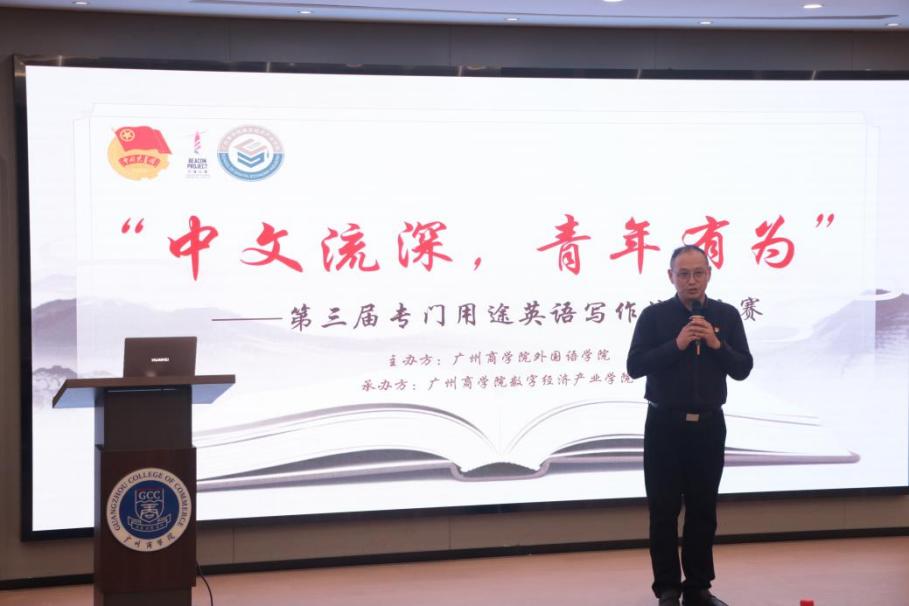 12月16日晚,“中文流深,青年有为”第三届专门用途英语演讲比赛决赛在第八教学楼102会议室圆满举办。本次赛事由外国语学院主办,数字经济产业学院承办,信息技术与工程学院和经济学院协办,旨在搭建学子展示英语能力、传播中国文化的平台,激发青年一代的文化自信与使命担当。外国语学院第二党支部书记唐海民、大学英语二教研室主任姚丽芳老师及李琦老师、刘琼雨老师、陈奕锋老师担任评委,来自数字经济产业学院、信息技术与工程学院和经济学院2024级的24名晋级选手同台竞技,展现青春风采。