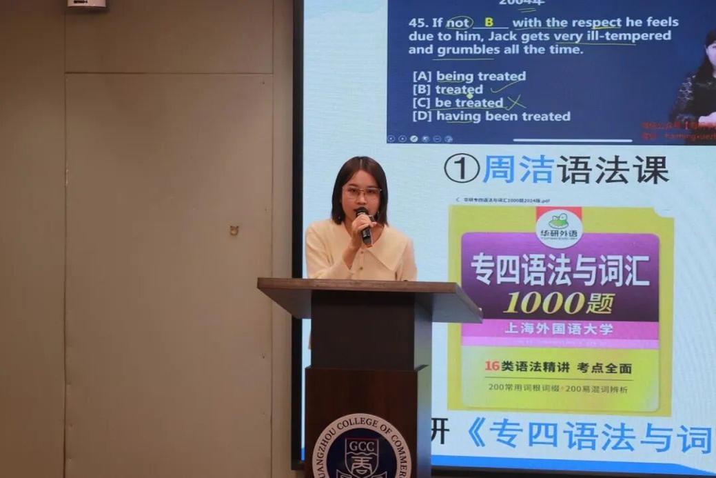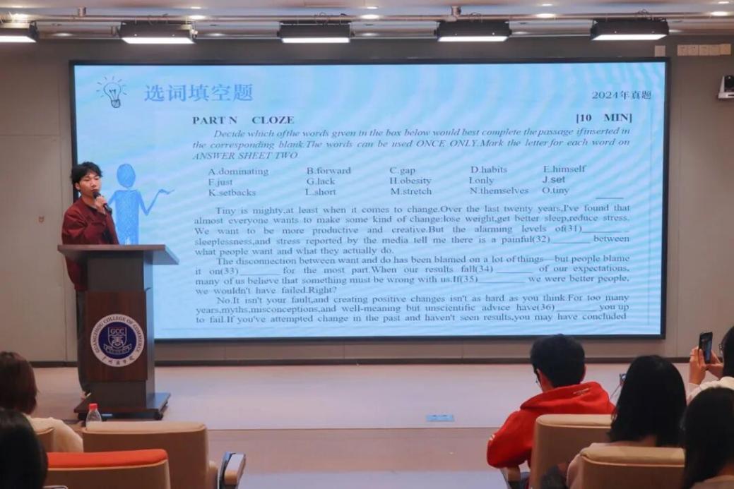 为深入贯彻落实立德树人根本任务,掌握科学备考策略,助力学生从容应对英语专业四级考试,外国语学院教工党支部及学生会于11月18日在第八教学楼204室举办2025年“我为同学做实事”之英语专业四级考试经验交流会(英语场)。出席的嘉宾有外国语学院学生会指导老师陈丽珊,英语系专任教师孟源,学生嘉宾吴宇涛、李诗韵,外国语学院学生会主席团全体成员。
