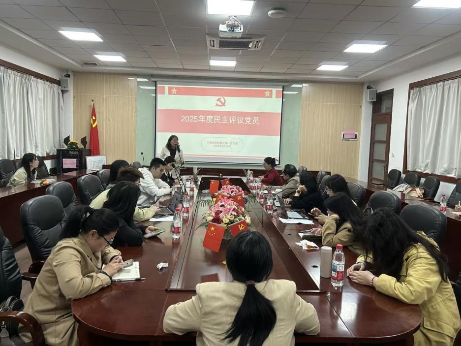 为深入学习贯彻习近平新时代中国特色社会主义思想,全面贯彻落实党的二十届四中全会精神,锲而不舍地落实中央八项规定精神,推进作风建设常态化长效化,3月12日中午,外国语学院教工第一党支部在第二行政楼308室召开2025年度组织生活会暨民主评议党员大会。会议由党支部书记田晶晶主持,支部全体党员参加会议。